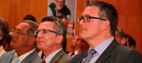 Abschließend nahm sich Verteidigungsminister de Maizière noch für zahlreiche Gespräche, Signierungen seines jüngst erschienen Buches und Fotos mit Gästen Zeit, ehe er sich von Michael Donth und Ernst-Reinhard Beck, welcher für ihn mittlerweile zum echten Freund geworden sei, verabschiedete.